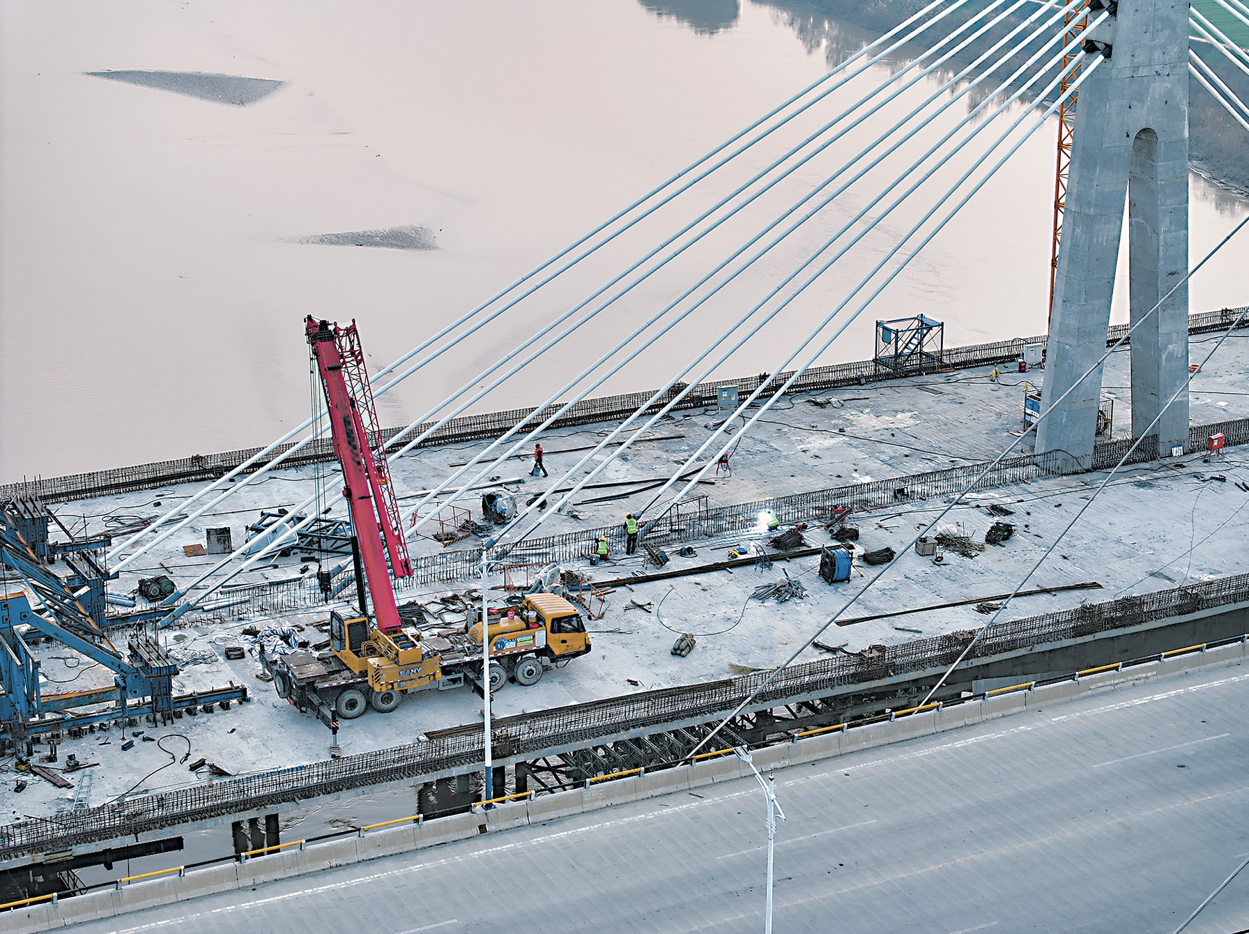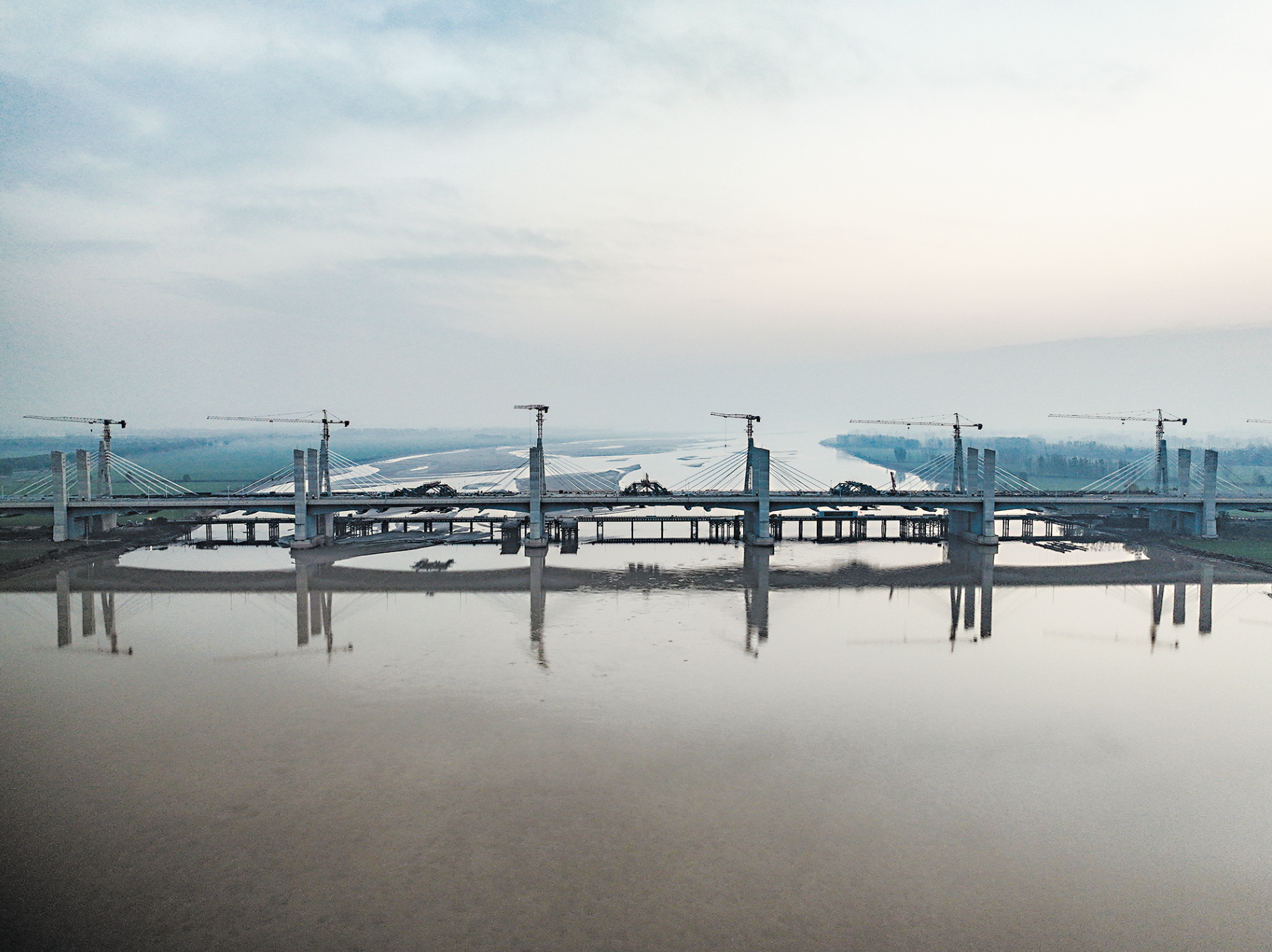 12月2日清晨,东明黄河公路大桥扩建工程的建设者们正趁着冬日晴多雨少的时机加紧施工。据了解,东明黄河公路大桥是我省境内最长的一座公路大桥。扩建工程全长7.62千米,总投资20.45亿元。扩建工程完工后,将改善黄河两岸人民群众的出行条件,对加快山东、河南两地的融合发展进程,以及黄河流域生态保护和乡村振兴战略实施均具有重要意义。