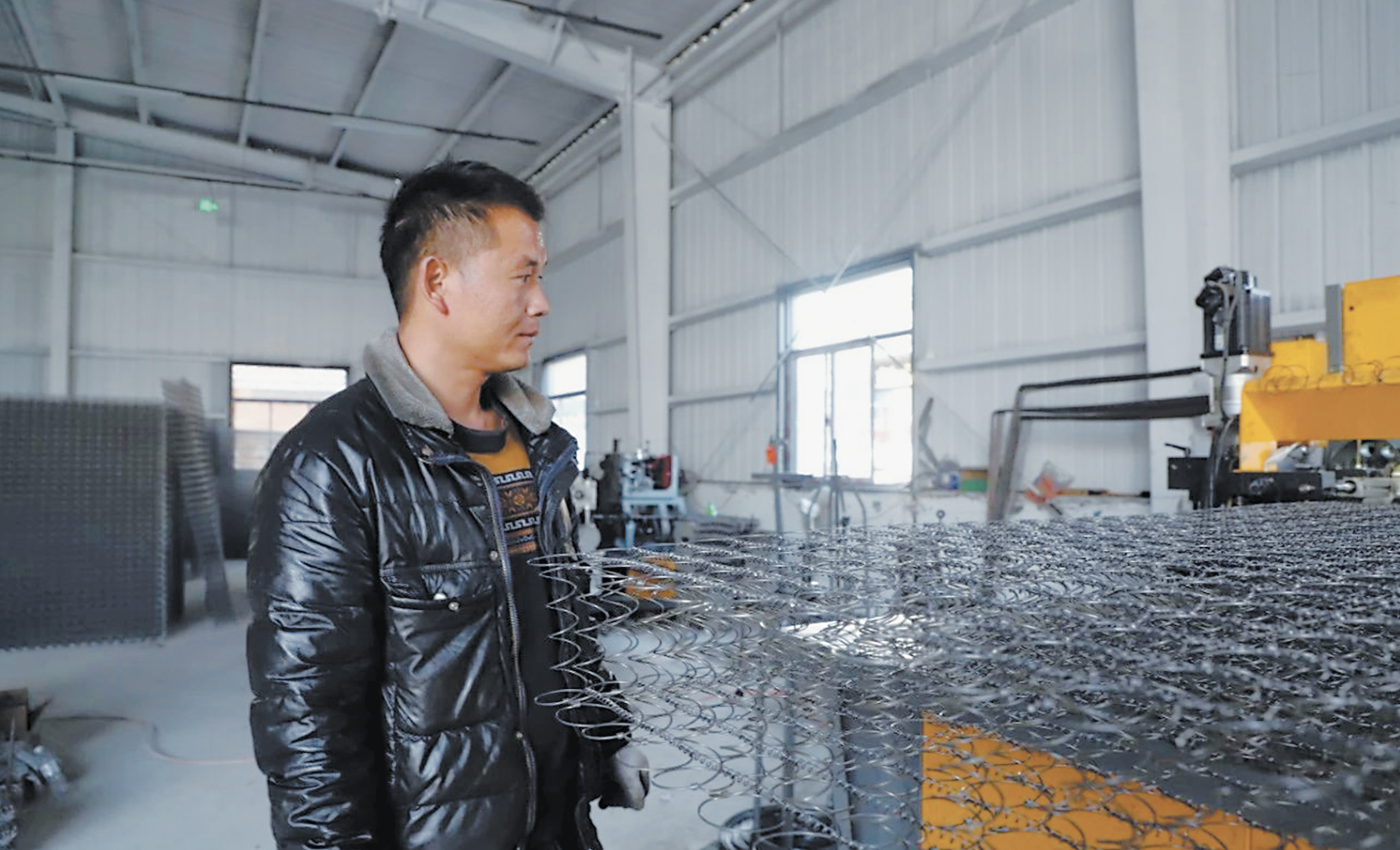 寇海建曾在弹簧床垫制造领域深耕多年,掌握了先进的自动化床垫弹簧加工技术。2024年7月份,他带着在外闯荡积累的经验和技术,回到家乡开启了创业之旅。