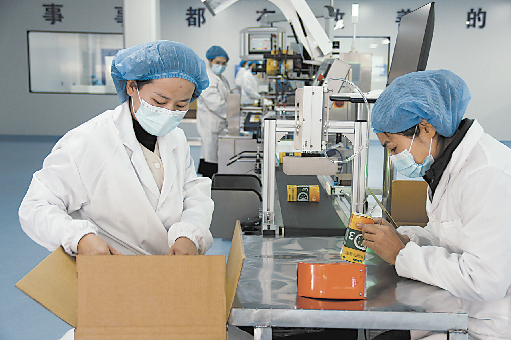 12月23日,巨野县华夏国药(菏泽)制药有限公司药品包装车间,工人正在分装药品。据悉,该公司是一家集药品研发、生产、销售于一体的综合性制药企业,主要产品涉及维生素矿物质药品、幼儿用药及呼吸系统药品等领域。近年来,我市积极培育生物医药产业,搭建研发创新平台,为经济高质量发展赋能。华夏国药加大科技投入力度,加强技术研发,完成科技创新项目立项19 项,科技成果转化13 项,取得国家发明专利3项,实用新型专利23项,突破多个“卡脖子”难题,企业核心竞争力和市场占有率不断提升。
