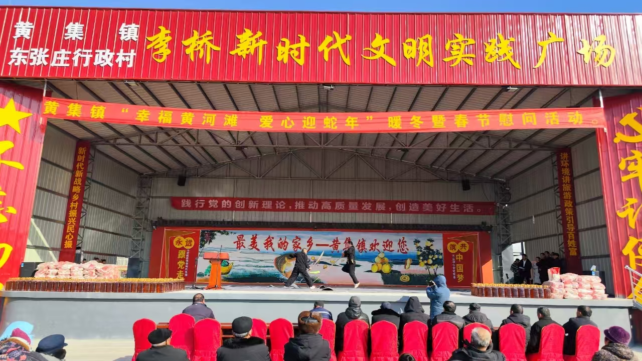 中国菏泽网消息(通讯员 张世柱)欢声笑语辞旧岁,喜气洋洋迎新年。为迎接新春佳节的到来,不断丰富群众精神文化生活,营造文明和谐、喜庆祥和的节日氛围,1月10日,黄集镇在东庄张村新时代文明实践广场开展“幸福黄河滩 爱心迎蛇年”暖冬暨春节慰问活动。