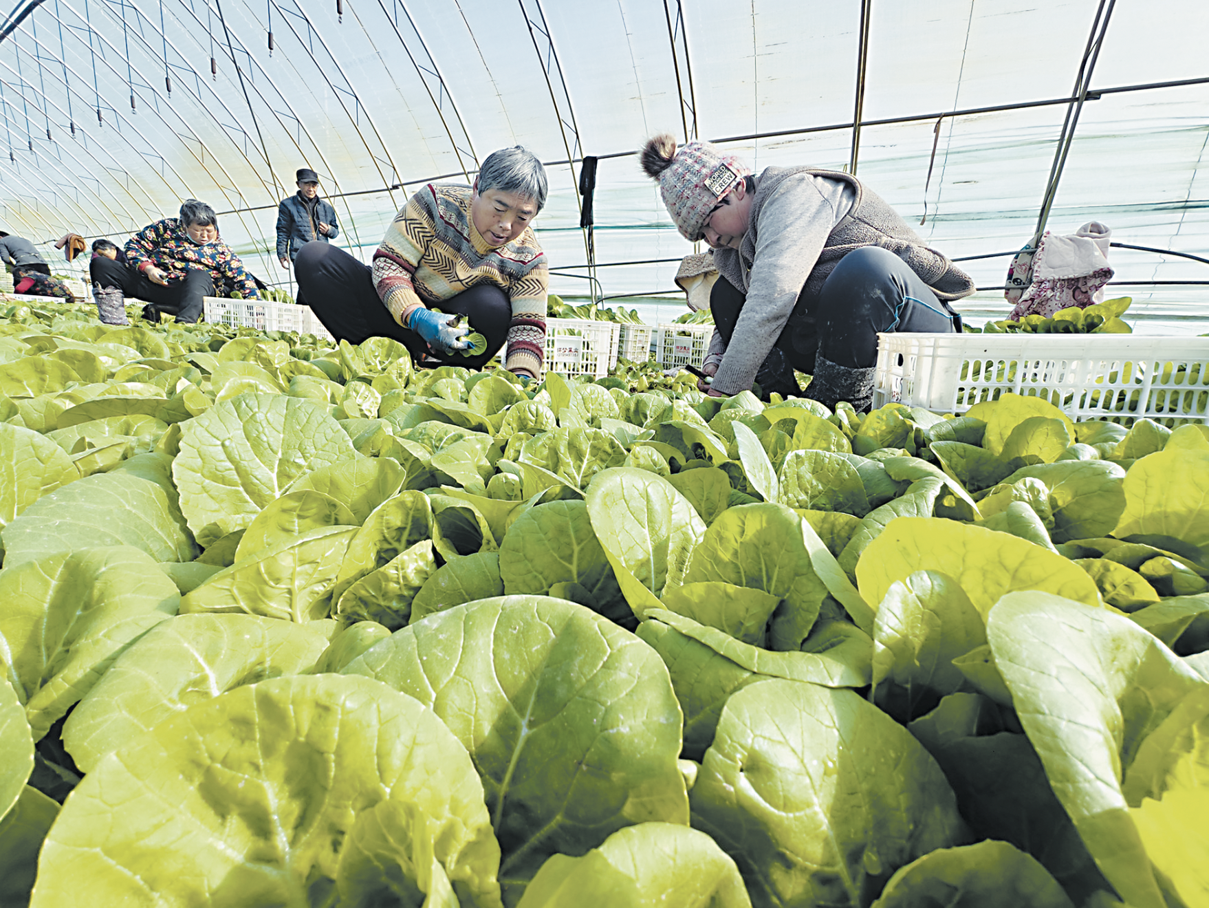 走进邵庄镇,一座座蔬菜大棚映入眼帘,大棚内种植的油菜、快菜等长势喜人,成熟的蔬菜及时销售,工人们有序采收,一派繁忙景象。