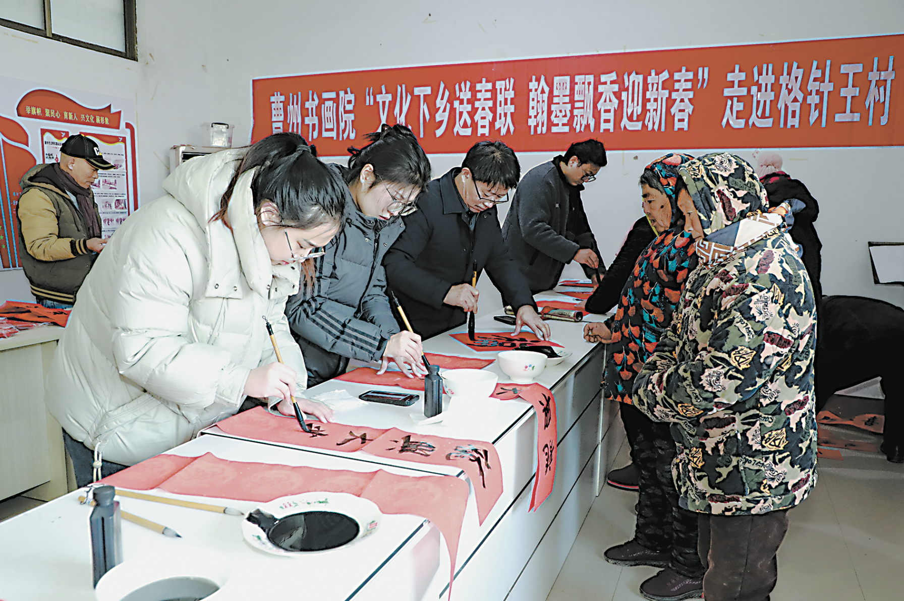 1月14日,曹州书画院组织书法家走进牡丹区何楼街道格针王村,开展“文化下乡送春联 翰墨飘香迎新春”活动,此次活动旨在传承中华优秀传统文化,给村民传递美好的新春祝愿。