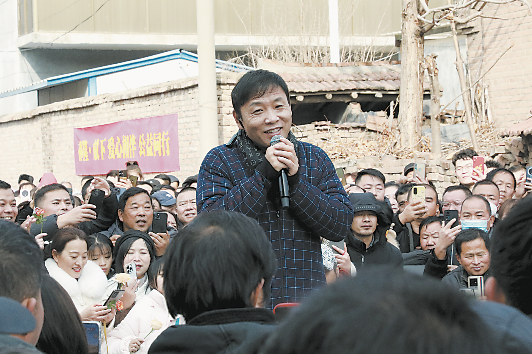 近日,音乐人祁隆回到老家鄄城县阎什镇后闫庄村过年,免费为村民举办乡村演唱会,现场热闹非凡。祁隆还给村里60余名70岁以上老人每人发放1000元现金和新年礼品,为家乡老人送去新春祝福。