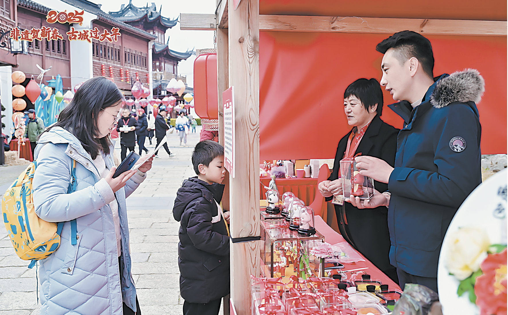 不仅如此,春节前夕,李斌和他的母亲陈素景,还应邀到江苏苏州参加2025年“非遗贺新春 古城过大年”主会场活动。作为山东省参展的三个非遗代表性项目传承人代表,李斌不仅参加了“年货好囤、年味好浓、年戏好看、年俗好玩、年礼送福”为主题的姑苏年市·新春非遗游园会,更现场展示了曹州面人版《戏曲福蛇》《醒狮系列蛇》等新创作的曹州面人作品,让国家级非遗“曹州面人”苏州秀技艺。