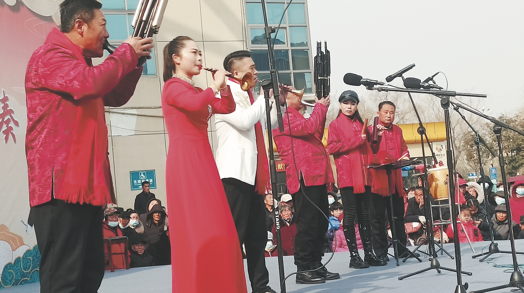 正月十五,单县群众文化中心广场,鲁苏豫皖接壤地区鼓吹乐演奏会精彩上演,来自四省接合部的单县、丰县、商丘市、砀山县等10支民间鼓吹乐演奏队分别演奏了《百鸟朝凤》《朝阳沟》《花木兰》等十几个传统曲目,吸引数千名观众欣赏,为传统节日增添了欢乐祥和的气氛。