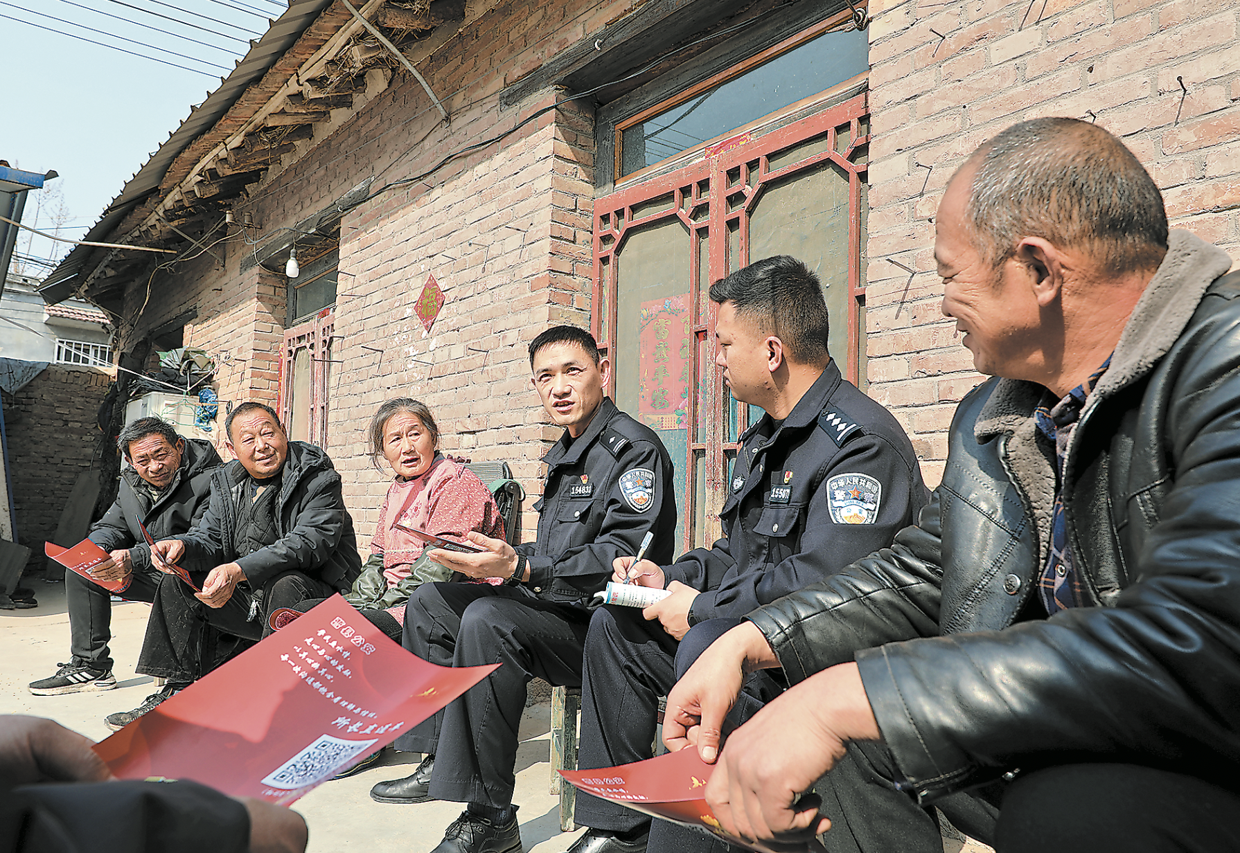 2月18日,曹县公安局郑庄派出所民警深入辖区村民家中进行走访,访民情、察民意、听民声、解民忧、调纠纷、话安防,听取群众意见与心声,与村民面对面交谈,做好人民群众的贴心人,并向村民发放“所长直通车二维码”宣传页,群众急需就可以用手机扫码进行业务咨询、事项求助、线索举报等。图为民警在郑庄街道郑庄村一群众家中走访。