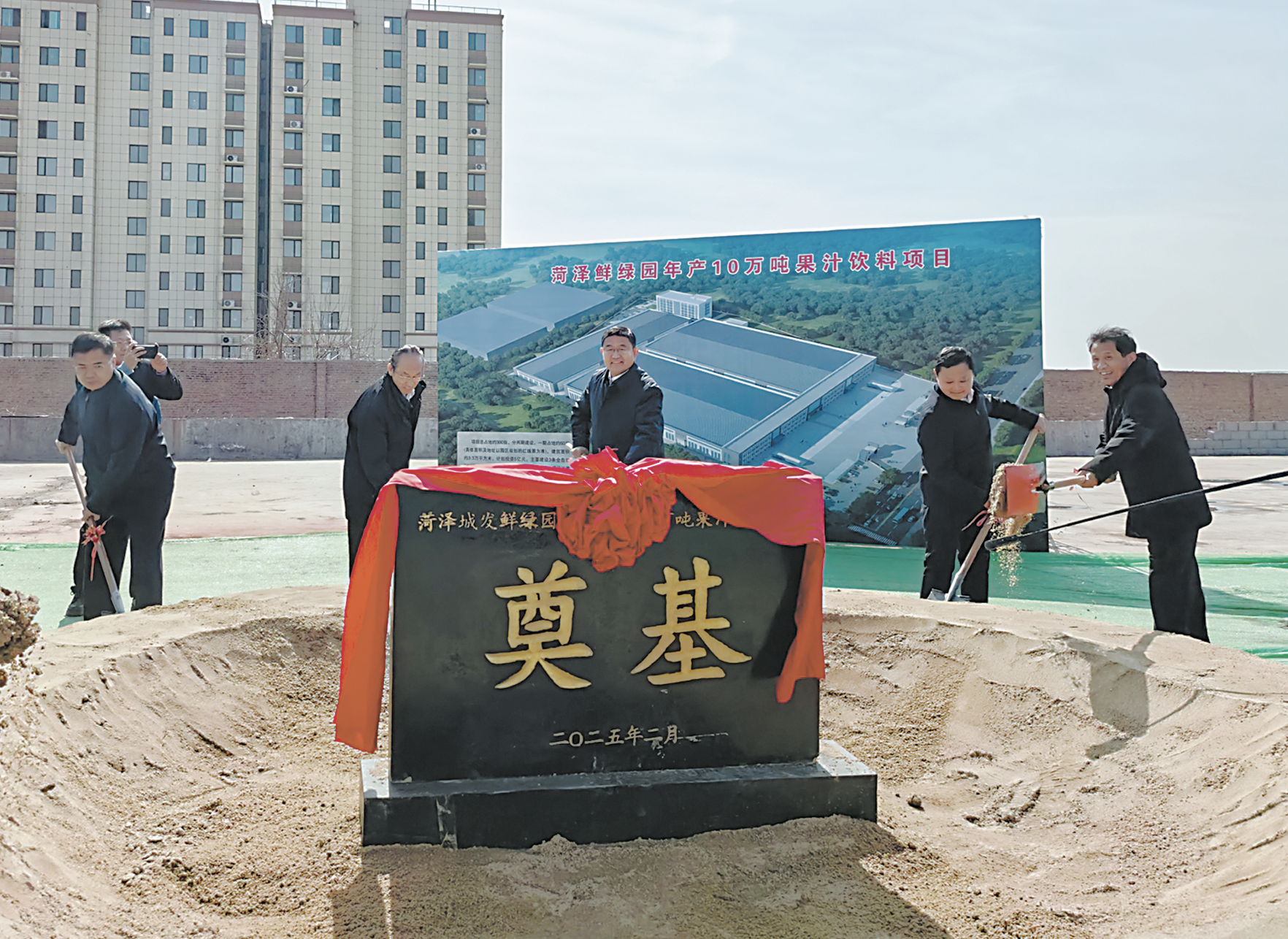 中国菏泽网消息(记者 郭卫东) 2月24日,菏泽鲜绿园年产10万吨果汁饮料项目在牡丹区沙土镇奠基开建,标志着牡丹区2025年春季重点项目建设拉开帷幕。