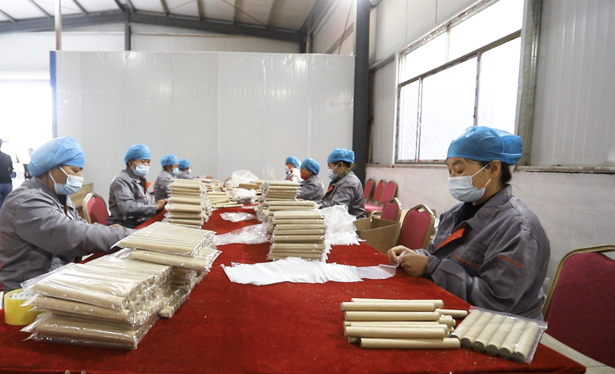 3月1日,单县莱河镇许河村艾草加工车间工人正在包装艾柱。据了解,许河村党支部领办合作社流转土地600余亩,种植中草药艾草;新建艾草加工车间生产艾绒、艾条、艾柱等中医理疗用品,并取得检测合格证明和产品资质证书,为合作社艾草产品办理了“身份证”,年加工艾绒30余吨,为周边群众提供就业岗位30多个,村集体年增收50万元,村民流转闲置土地年亩均增收4000余元。