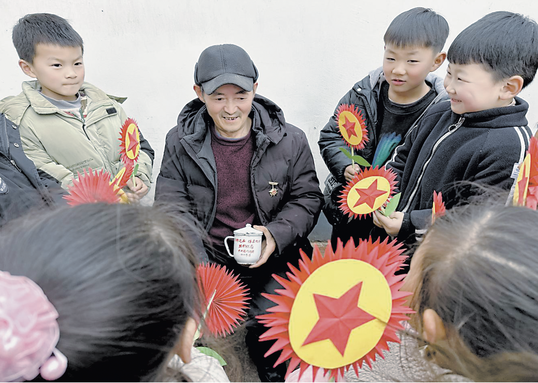 3月6日,鄄城县旧城镇六合社区幼儿园开展“学习雷锋精神 传承红色文化”主题活动。孩子们围坐在对越自卫反击战老兵张兆才身旁,聆听他讲述战场上的峥嵘岁月。这场生动的红色教育课,引导幼儿铭记历史、传承红色基因,筑牢争做新时代接班人的理想信念。