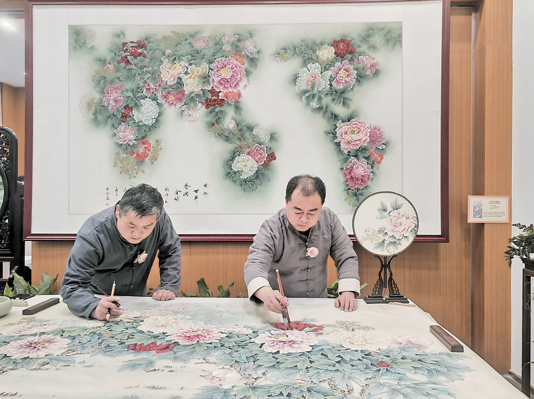 勾线、分染、罩染、题款、用印……3月24日,在巨野县书画院内,画师们挥笔作画,一朵朵雍容华贵的牡丹花在宣纸上精彩“绽放”。“目前,我们正在紧张筹备中国工笔牡丹画产业发展论坛。”巨野县书画院院长程军伟介绍,“为大力弘扬中华优秀传统文化,以创新成果推动巨野工笔牡丹画全产业链科学发展,进一步打响菏泽牡丹产业和巨野工笔牡丹画品牌,自2021年以来,我们连续举办了多届中国工笔牡丹画产业发展论坛。”