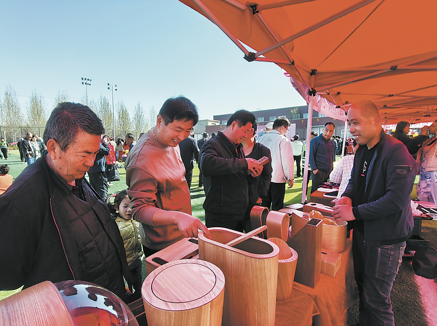 4月5日,在“2025乡村好时节·游购乡村”牡丹区安兴镇第七届海棠文化旅游节活动现场,游客们穿梭于各个摊位之间。庆美工艺品摊位格外引人注目,不少游客正饶有兴致地挑选着,这些精美的工艺品不仅展现了当地传统文化和精湛工艺,也为游客们提供了独特的购物体验。