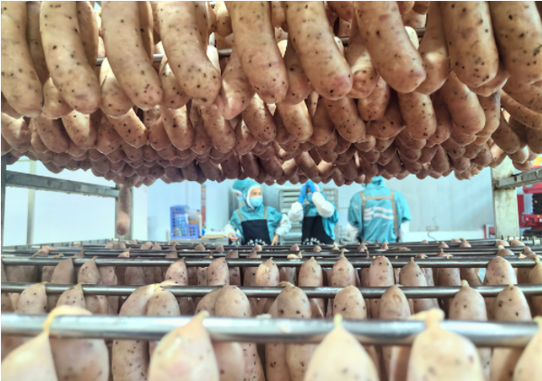 4月15日,牡丹区胡集镇山东江正食品有限公司生产车间,色泽鲜亮的火腿肠整齐排列,工人正在进行分拣作业。该公司主打速冻火腿等预制类产品,凭借稳定的品质畅销全国市场。近年来,牡丹区聚焦预制菜、农副食品、牡丹深加工等领域,做大做优做强“绿色食品产业集群”,推动食品产业向高端化、品牌化升级。