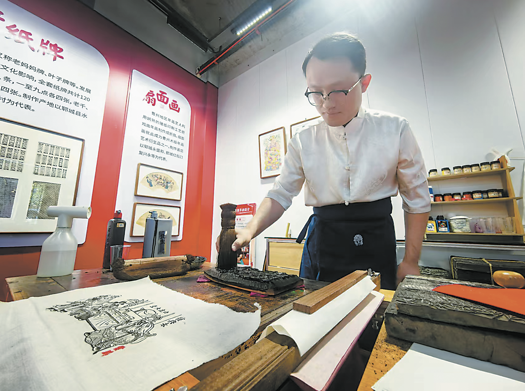 为了更专业地传承这项技艺,李邦鹏不仅拜师郓城水浒纸牌及雕版印刷工艺传承人高爱贤,精研制作技艺,还积极学习营销知识,培养市场眼光。他敏锐地观察到,传统年画需要拥抱当下才能焕发新生。“我们在老城曹州景区设立工坊,就是希望吸引更多人参与进来。”李邦鹏介绍,通过举办展览、公益讲座等活动,让公众亲身感受曹州木版年画的魅力。