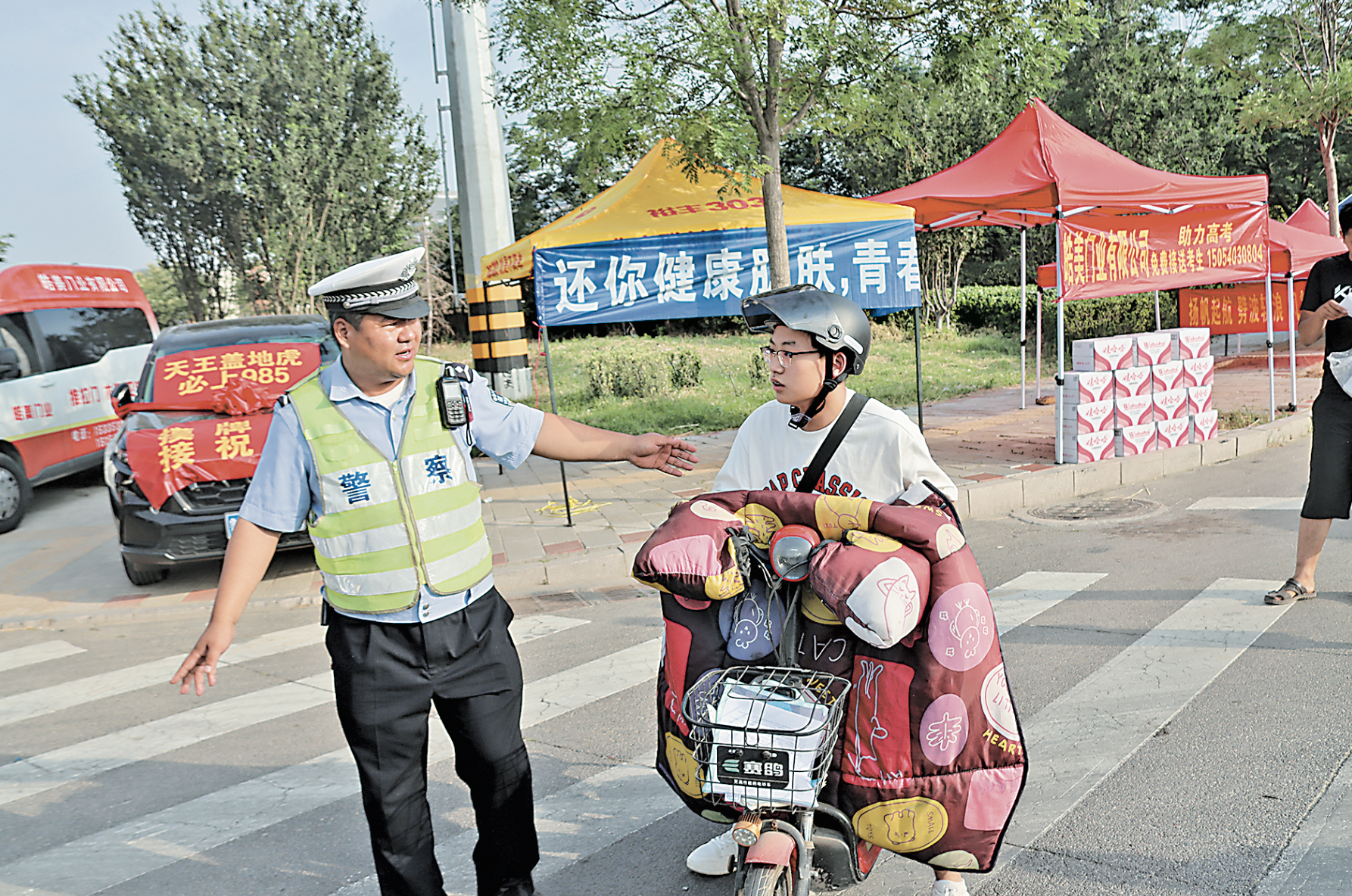交警们时刻保持着高度的警惕,用自己的专业和耐心,为考生和家长排忧解难。一位家长感激地对交警说:“有你们在,我们心里就踏实多了,谢谢你们为孩子们保驾护航。”