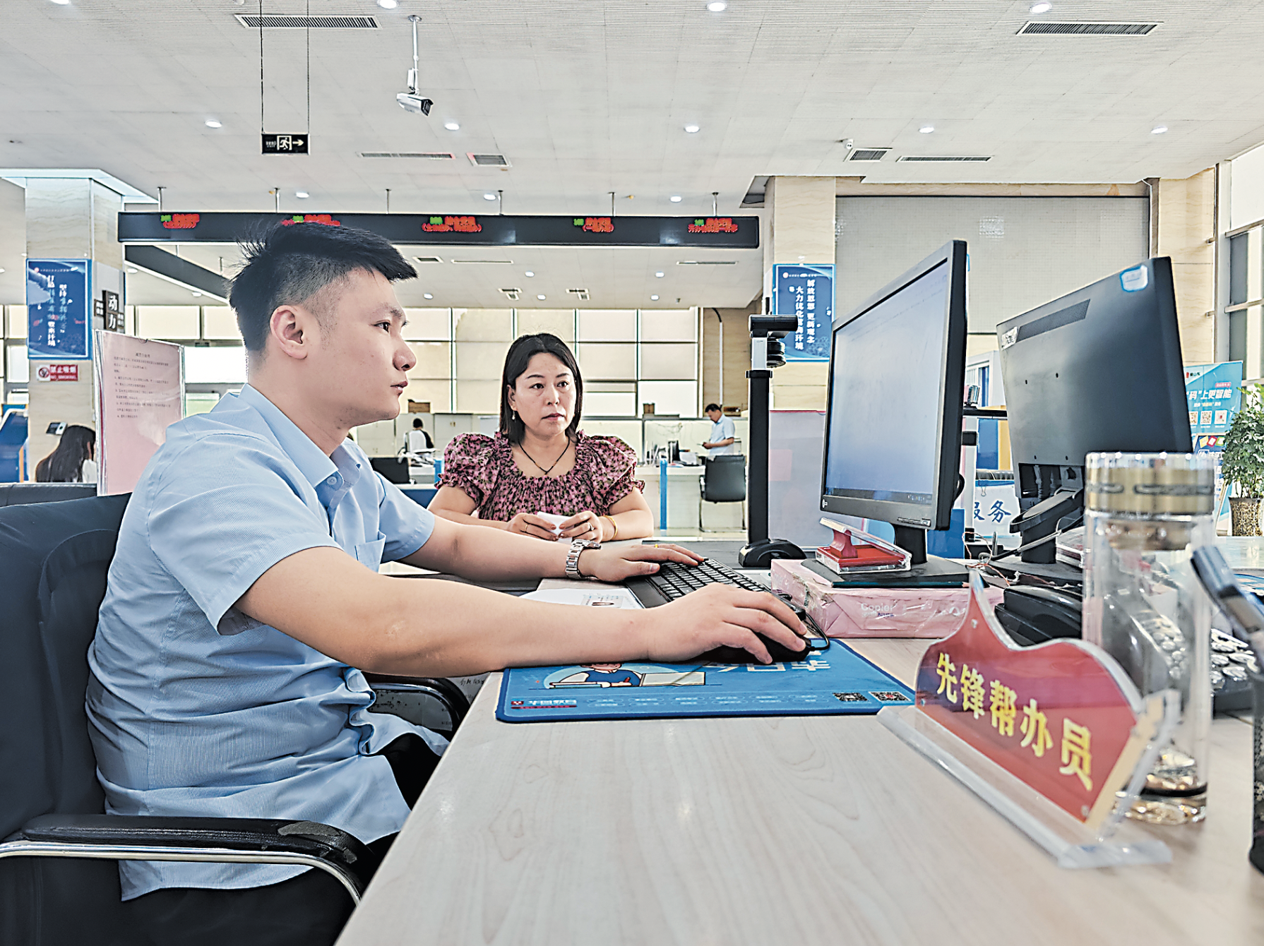 日前,在牡丹区行政审批服务局的免费帮办代办窗口,“先锋帮办员”正耐心地为群众提供企业信息网上填报服务。