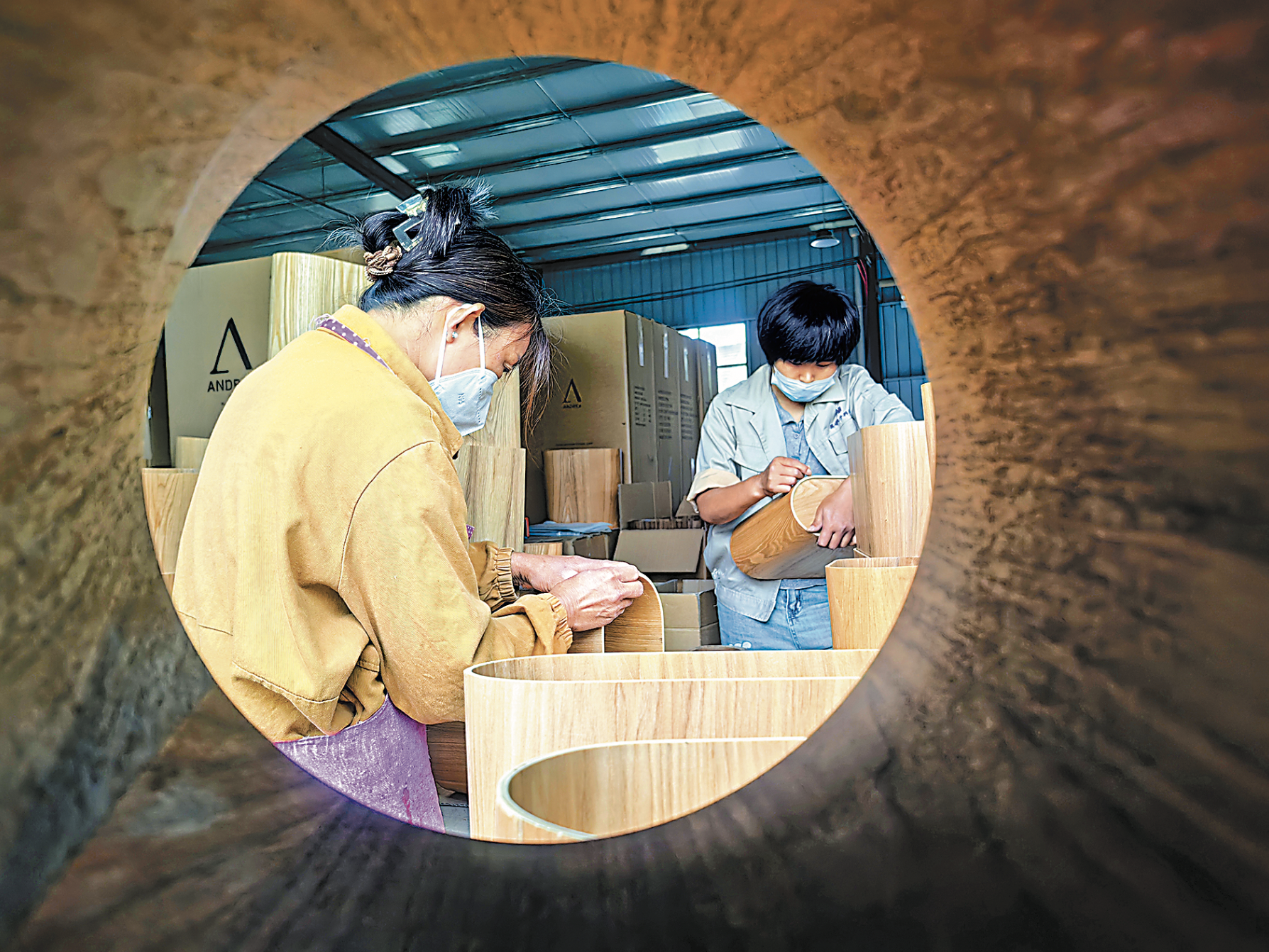 6月10日,村民在牡丹区安兴镇的菏泽庆美家具有限公司车间整理产品。公司研发生产的木制抽纸盒摆件、垃圾桶、小木艺制品等通过线上销往全国各地,并出口日本、韩国、瑞典、马来西亚等国家。近年来,安兴镇立足板材加工及小家具生产等产业优势,引导木材加工产业链不断延伸,依托电商平台销售,不仅增强了产业造血功能,还拓展了村民增收路。