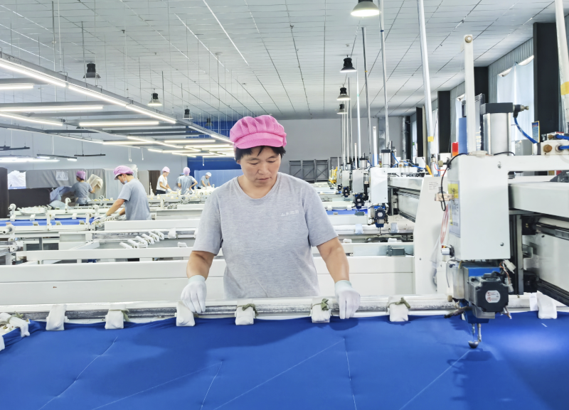 日前,巨野县龙堌镇乡村振兴产业示范园山东迦勒智能家居有限公司生产车间,工人正在赶制订单。该公司为我市招商引资重点企业,主要生产各种床上用品、家用纺织品,产品销往日本、欧洲、北美洲等国家和地区,年营收2000万元,带动周边300多名妇女在家门口就业。