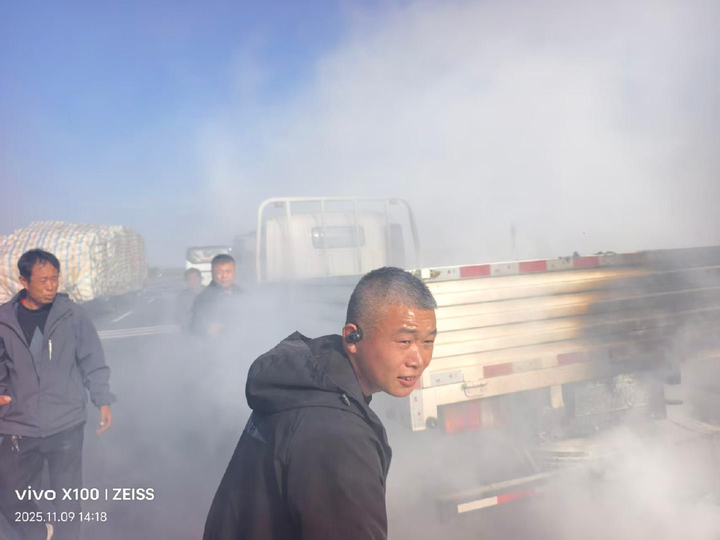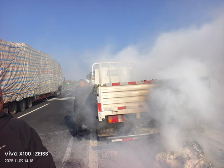 事情发生在11月9日上午,53岁的张宪良和董亚开着私家车,正赶往黄岛看望朋友。当车辆行驶至日兰高速距离莒县服务区还有6公里处时,前方路面突然升起的滚滚浓烟打破了平静。“老远就看见黑烟冲天,走近了才发现是一辆小货车在着火,火焰都蹿到很高了。”张宪良回忆道,当时货车的轮胎、车厢里的棉衣棉被都在燃烧,引擎盖下方更是火光四射,隐约能看到油箱的位置,情况十分危急。
