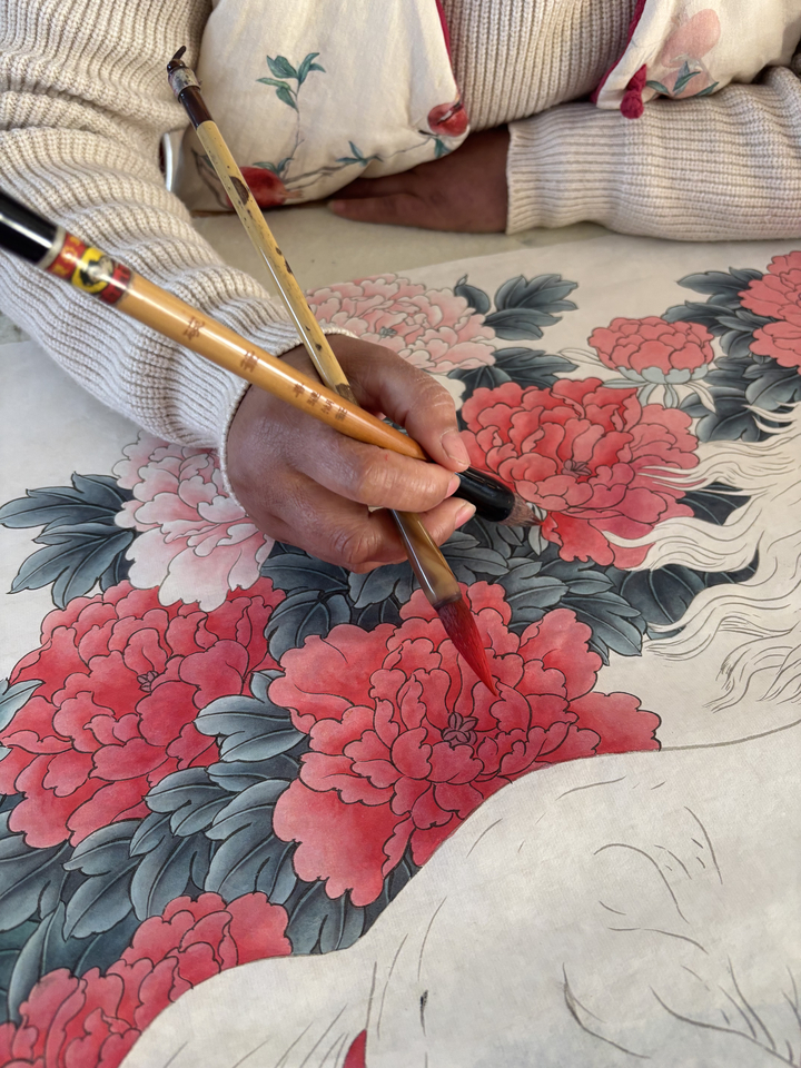 这里的成长从不是一蹴而就。工笔牡丹画看似简单,实则需经长期打磨,这份慢功夫里,藏着对弱势群体的耐心,政府每年500万元资金扶持、“树品牌育人才拓市场”的政策指引,加上画院多元化销售渠道的开拓,让非遗技艺不仅能传承,更能变现,让学员既能兼顾家庭,又能收获尊严,甚至让“我妈是画家”成为孩子骄傲的底气。