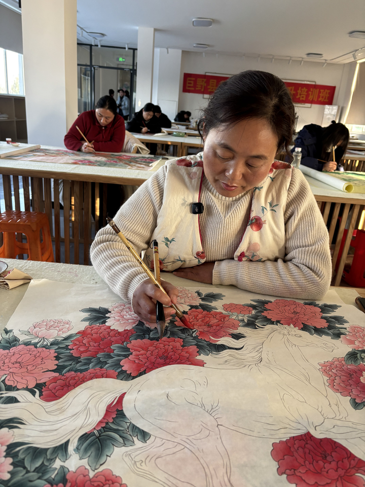 巨野县鲁西书画院:放下锄头拾起画笔,留守妇女也能绘就人生“国色天香”