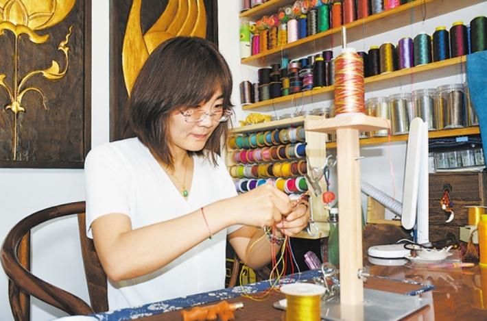 一走进汤杰的林息绳艺工作室,就会被眼前各种精美绳结艺术品所吸引。她不停歇地创作着作品,有时候忙得一天连水都喝不上几口。之前,她是一名普通的大学老师,生活圈子也小,出了校门谁都不认识。现在汤杰通过一根绳子,可以演变出形式多样的艺术品,也通过这七彩的绳子,认识了好多朋友。