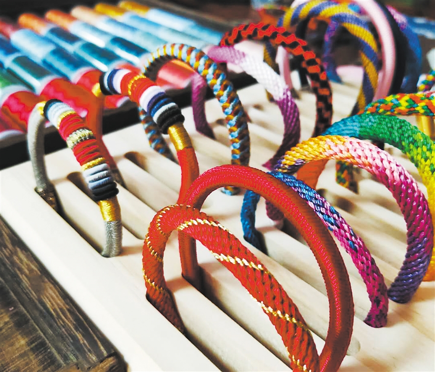 绳艺曲折,有苦亦有甜。汤杰品着茶水,十指联动,上下翻飞,手中不停地编织着端午的手串,对于绳艺的热爱因由向记者娓娓道来。