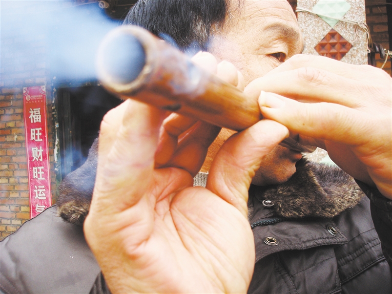 “吃龙火”是田向东的“拿手好戏”:火苗吞到嘴里,唢呐哨片在舌头上“鸣叫”,交替不断,火鸣不迭,真可谓声情并茂,惊心动魄。“开始练习鼻穿钉时,钉子蹭地鼻孔直痒痒,连打喷嚏。也就是因为难学,很多人都半途而废了。”