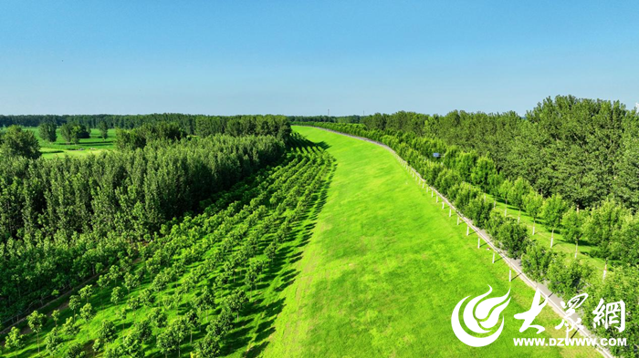 湛蓝的天空下,鄄城县黄河大堤一望无际的林海延展到天际,从高空俯瞰,宛如一道绿色的“防沙屏障”。得益于沿黄生态廊道保护建设,去年以来,菏泽将沿黄生态保护带纳入国土空间生态修复重点区域,开展沿黄河土地综合整治与生态修复,实施山水林田湖草沙一体化治理。