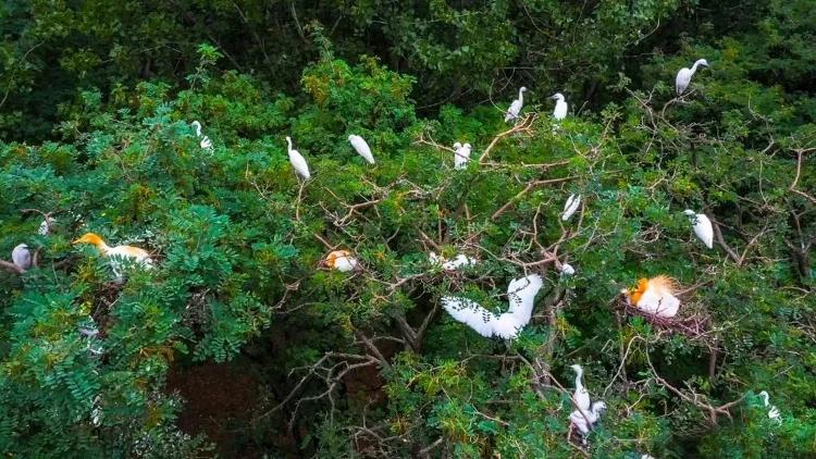良禽择好生态而栖。鸟类是生态环境的“晴雨表”和“监考官”。菏泽的各个公园一起组成为“城市绿肺”,水面广阔、水质优良,吸引了许多鸟类在此栖息、停伫。