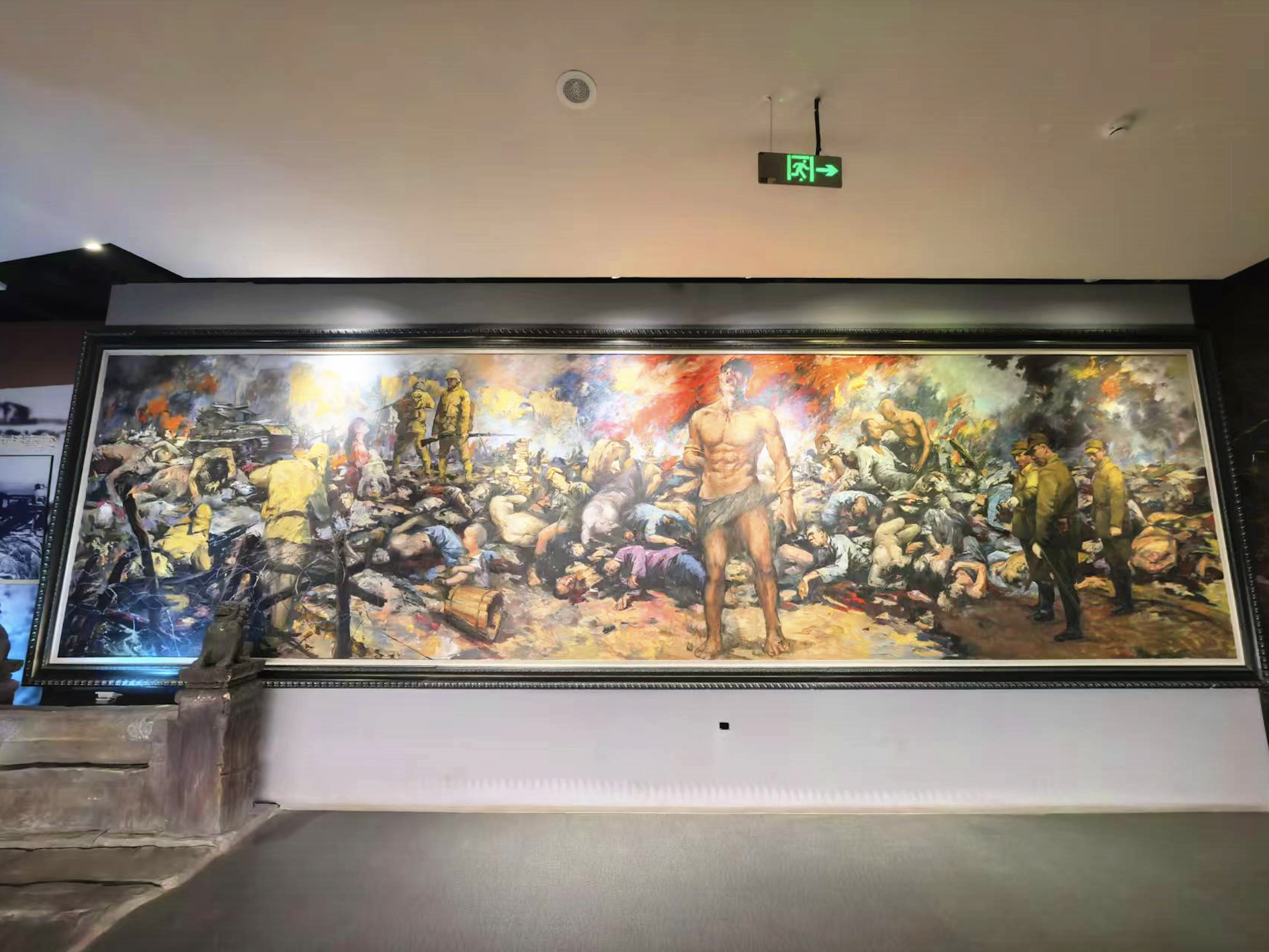 “画面中央这个顶天立地的汉子代表着菏泽人民不屈的精神,手无寸铁的他虽双手被捆绑,但仍然昂首挺胸,向天长啸。”6月23日,市抗日纪念馆内,《菏泽惨案》巨幅油画前,讲解员李效帆向参观者讲述。