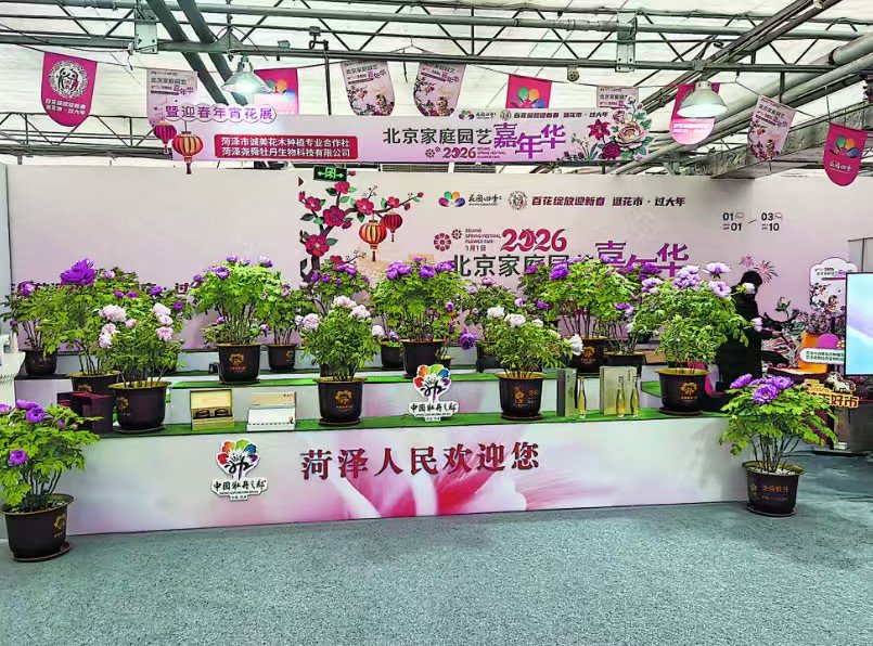 日前,2026北京家庭园艺嘉年华暨迎春年宵花展在北京花卉交易中心开幕。菏泽作为全国4个特邀城市之一,携牡丹及系列衍生产品精彩亮相,以花为媒,向首都人民展示菏泽牡丹的独特魅力与产业发展成果,为广大花卉爱好者送去浓浓春意。