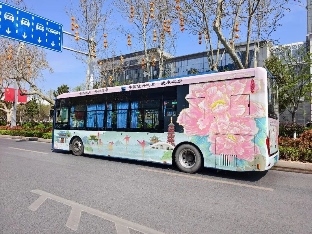 菏泽素有“中国牡丹之都”的美誉,同时拥有书画之乡、武术之乡、戏曲之乡、民间艺术之乡的“一都四乡”文化名片。此次牡丹文旅主题公交充分挖掘城市文化内涵,以牡丹为核心元素,结合“一都四乡”特色,对车辆外观进行主题化设计。每辆公交车的车身均以不同主题呈现,或展现国色天香的牡丹盛景,或融入传统书画艺术、武术英姿、戏曲风采及民间手工艺元素,形成“一车一主题、一车一风景”的独特风貌。