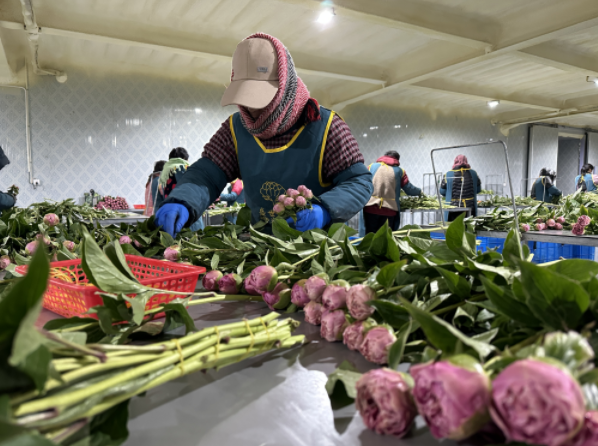 “所以我们找镇政府协调农用设施土地建起了12000立方米的冷库,就在田边。去年我们还完成了全冷链设施的完善,做到芍药鲜切花从采切、分级、预处理包装全冷链操作处理,把芍药瓶插期延长了一天。”马效悰说。