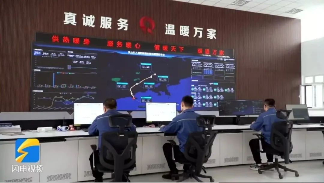 核能热源进入乳山后,由山东核电、海阳市海发集团和乳山热力集团联合成立联调联试小组,在乳山市设置核能供暖调控中心,统一指挥调度,构建起覆盖热源、供热管网、换热站及能源站的运行调度网络,确保分布在三方的供热链条,每个节点零延迟、快反应,稳定可靠。