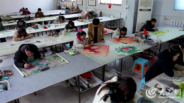 在巨野。2万名农民画师挥毫泼墨,56家基层画院、56处牡丹芍药园点缀着每一个角落。镇镇有画院,村村有书画师(室)。在全国各大画廊、画店销售的工笔牡丹画,80%以上出自巨野。