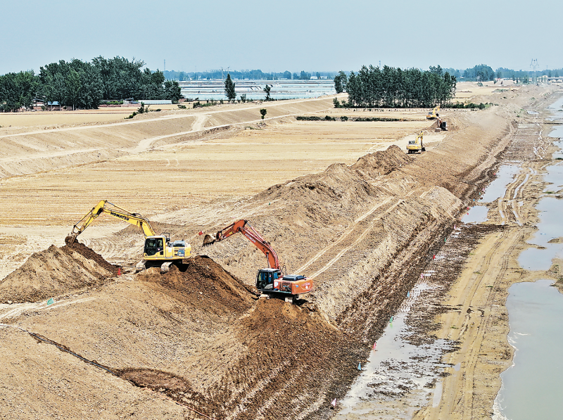 6月11日,在我市城市排水防涝体系重点工程——东鱼河北支治理项目(定陶段)施工现场,工程车辆正在有序进行河道疏挖作业。