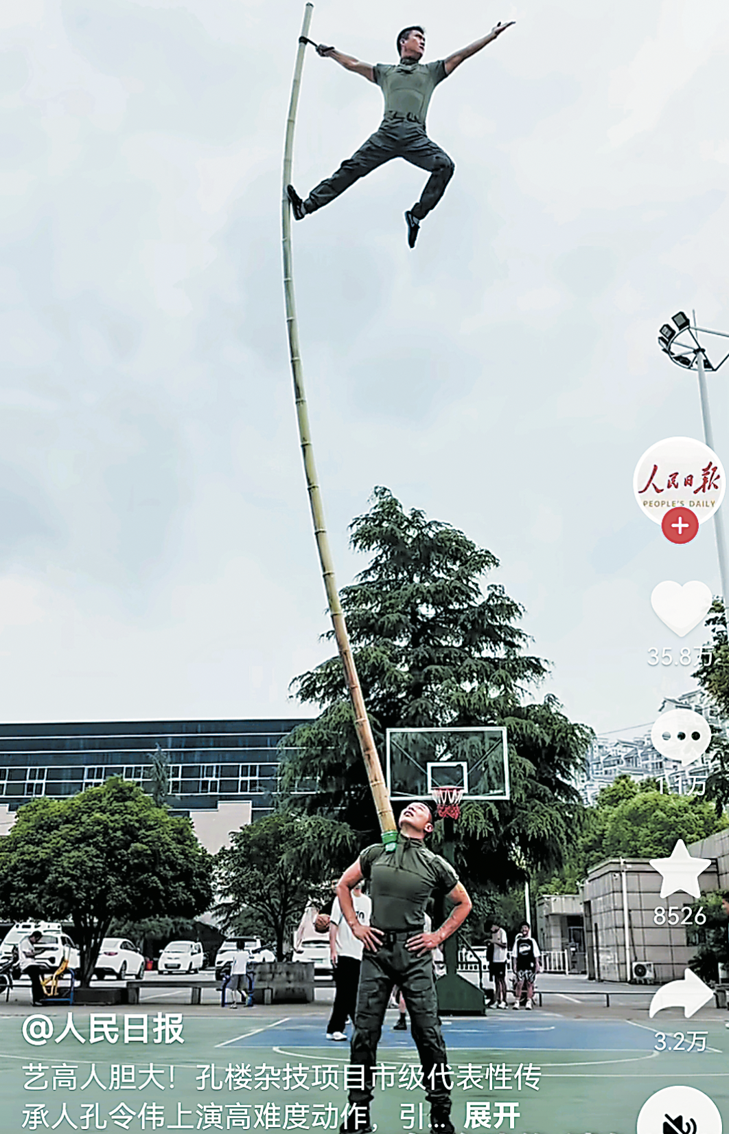 参加培训后,我市省级非遗代表性项目孔楼杂技市级非遗传承人孔令伟结合孔楼杂技特点,发布29条非遗展示类的视频作品,总播放量超过1.2亿次。其中,千万次以上播放量作品3条,百万次以上播放量作品5条,播放量最高的一条视频点赞数超过369.5万次。同时,孔令伟收到人民日报官方抖音账号的素材授权邀请,作品已登上人民日报的官方抖音号,播放量超过千万次,截至6月12日,点赞数超过35.8万。后续传承人持续与抖音团队交流账号运营方法,优化视频内容,并尝试开直播。