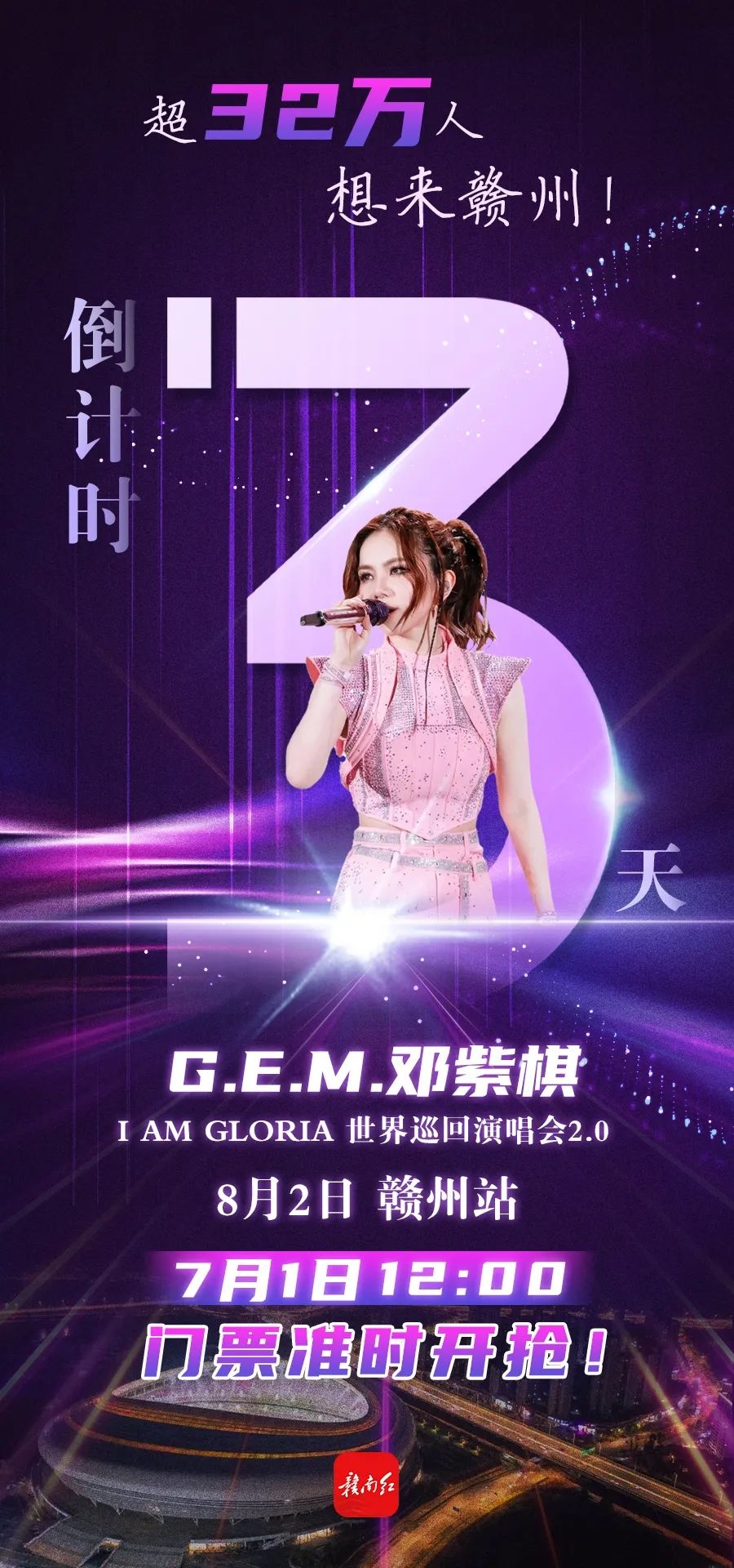 G.E.M.邓紫棋 I AM GLORIA 世界巡回演唱会赣州站7月1日12:00开抢!你准备好了吗?