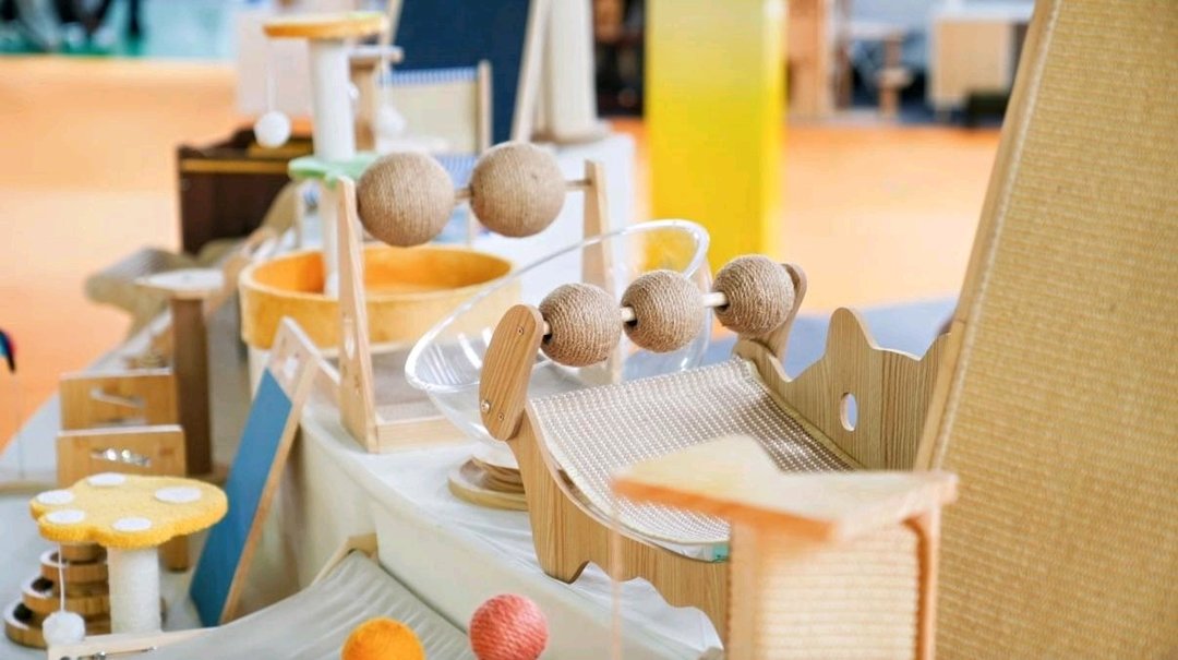 在曹县鹏辉工艺品展区,设计精巧的宠物“别墅”吸引了众多参观者。这款融合宠物休憩、玩耍并兼具清洁功能的创新产品,吸引了多位客户。