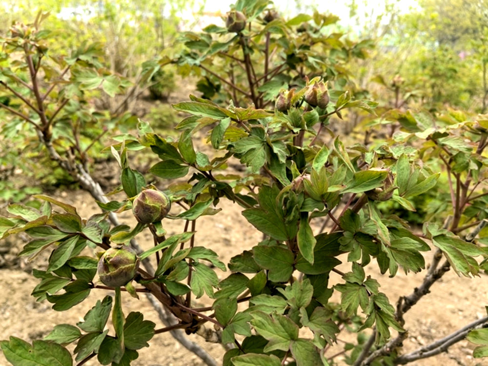 新华社客户端济南3月31日电(赵忠宇)日前,位于菏泽鲁西新区陈集镇长江东路的菏泽牡丹园内,两株黑色系珍品牡丹“墨润绝伦”惊现并蒂奇观,其中一株生出3枝并蒂牡丹,另一株生出6枝并蒂牡丹,目前均已含苞待放,静候游人。