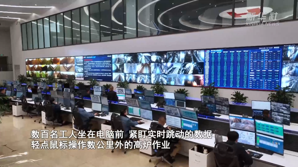 在日照钢铁控股集团,400余块屏幕覆盖了各个生产环节。数百名工人坐在电脑前,紧盯实时跳动的数据,轻点鼠标操作数公里外的高炉作业。