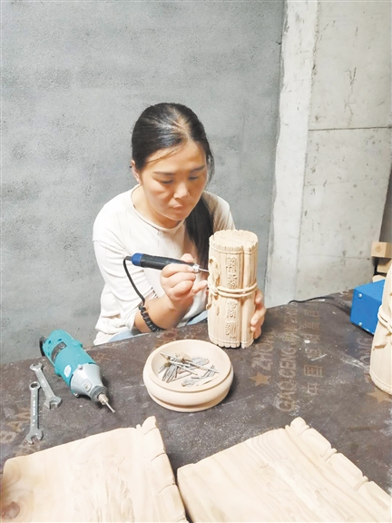 “当时不知道什么是大师,打听过后,我们才去专门拜了个老师学习木雕。”聂延英说,其丈夫李明见有木雕基础,但她直到2010年才开始有了融入感。