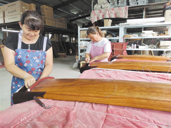 曹县楼庄乡工作人员潘硕介绍说:“安乐村的木材制作历史悠久,之前有不少村民以小作坊的形式进行木材加工、工艺品加工,并没有形成有气候的品牌。现在围绕当地优势,整合资源,建设扶贫车间,规范企业运作模式,大力扶持乡村企业,让制作优势成为产业优势,打造品牌,推进安乐村乐器制作产业持续发展,带领村民走上致富奔小康的道路。”