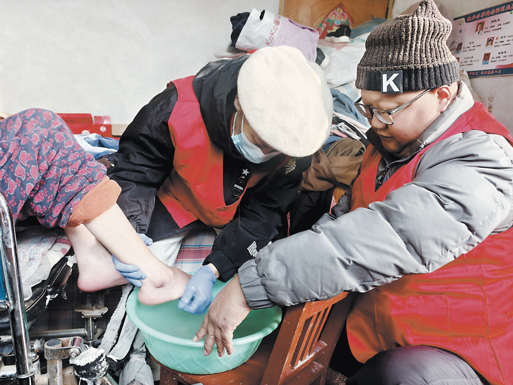 严珊珊因意外造成瘫痪,大多时间不得不躺在床上。当天,其母亲为她选择了按摩、洗脚等多项服务项目。“平时都是我一个人照顾,他们来了,我轻松了很多,他们比我专业,真是谢谢他们了。”严珊珊的母亲石女士说。