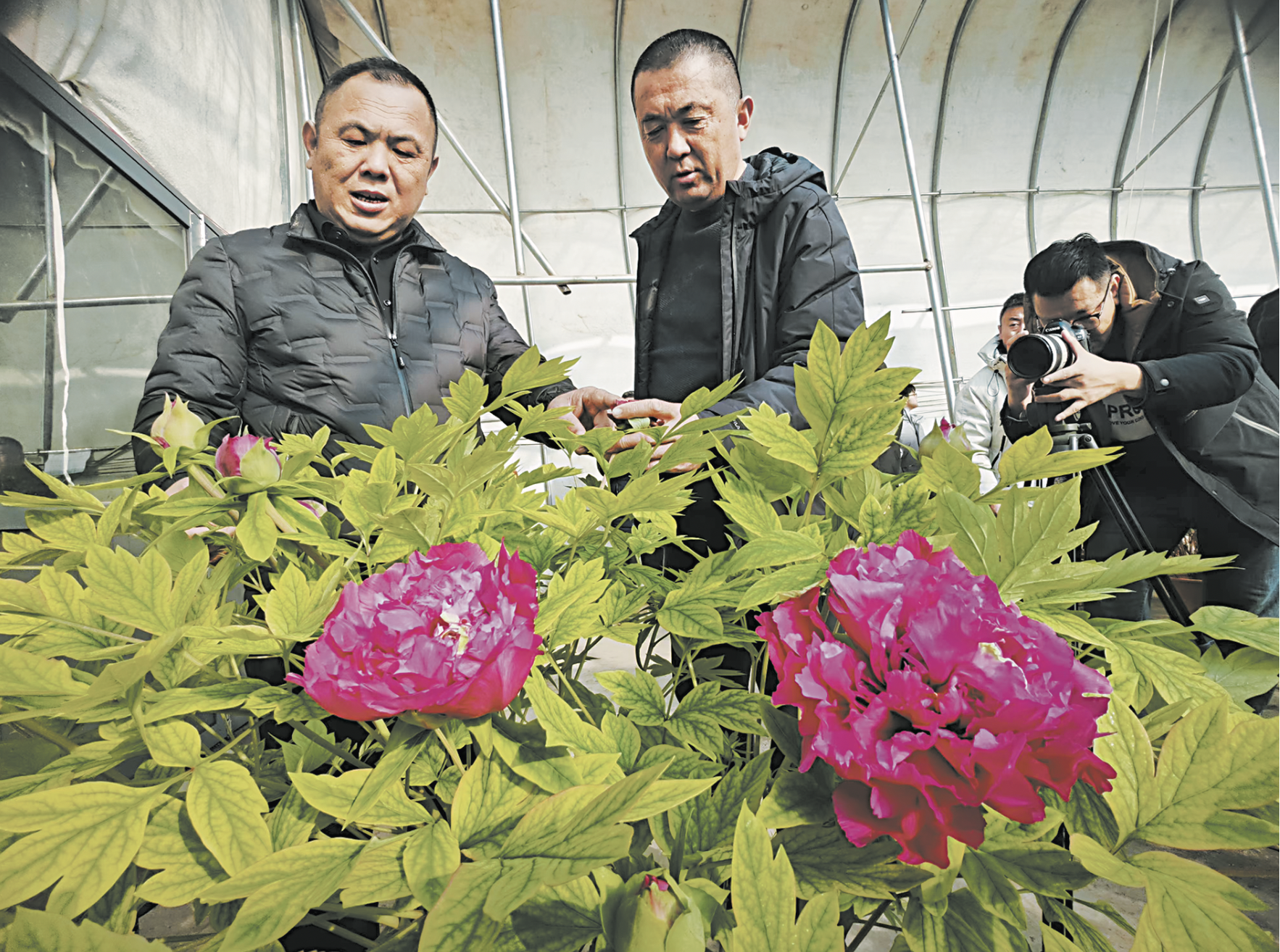 “小寒”时节,菏泽早期牡丹次第上市,晚期牡丹拔节生长。行走在催花大棚间,处处红妆点点,春意盎然,一盆盆催花牡丹正奉献着数九寒冬里的赏花盛宴。以花会友、以花兴业,一枝牡丹,不仅蕴含着广大菏泽人对“美”的追求,也日渐成为发展“美丽经济”的重要“增长极”。