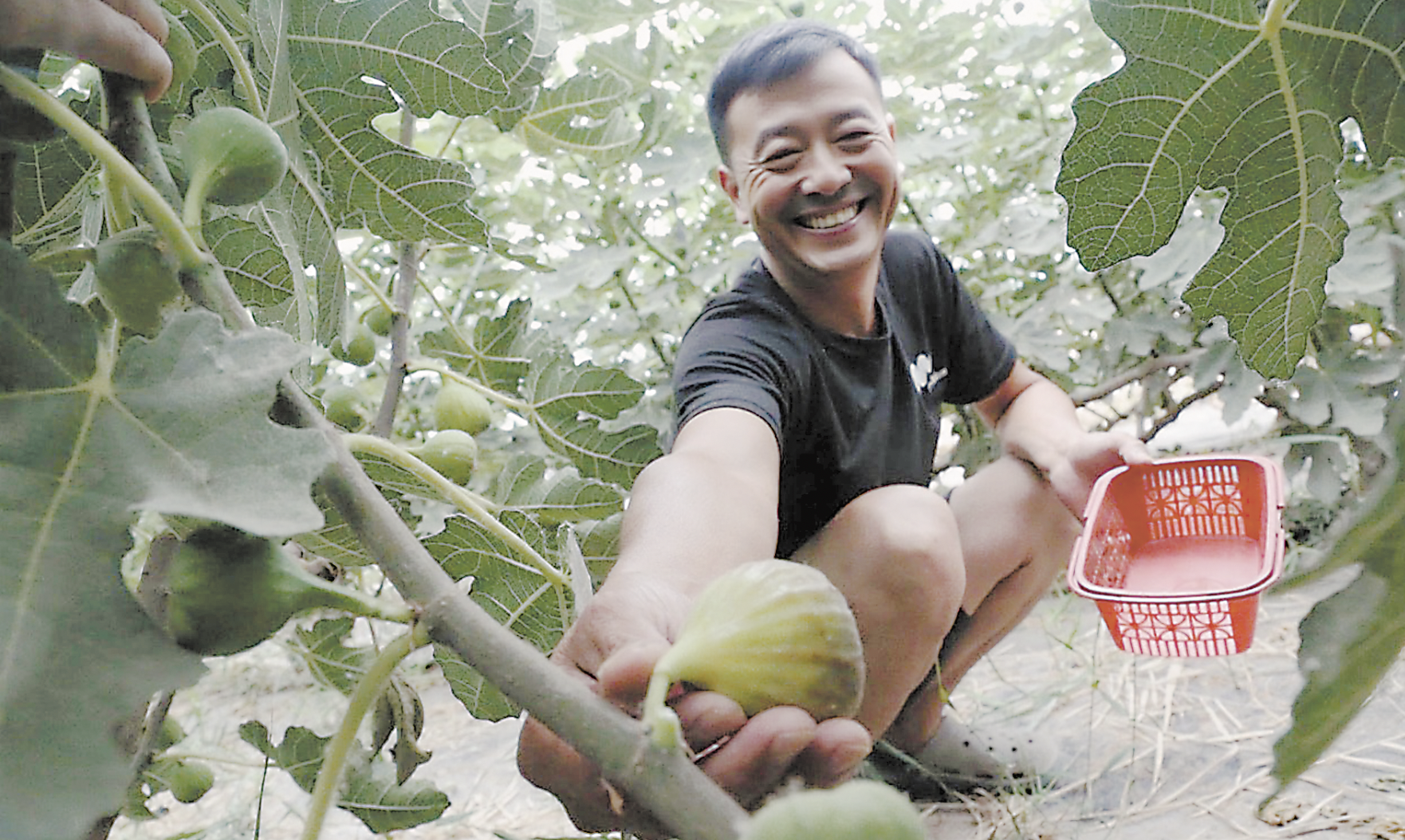 庄园西侧,6个无花果棚里,种植户杨守动正带游客采摘。青翠枝叶间,饱满的无花果探出头,煞是诱人。“这果子亩产四五千斤,棚里现摘的鲜甜,10元一斤,比市场价划算。”他介绍,农事采摘已成新体验,果实既销商超,也吸引市民前来。