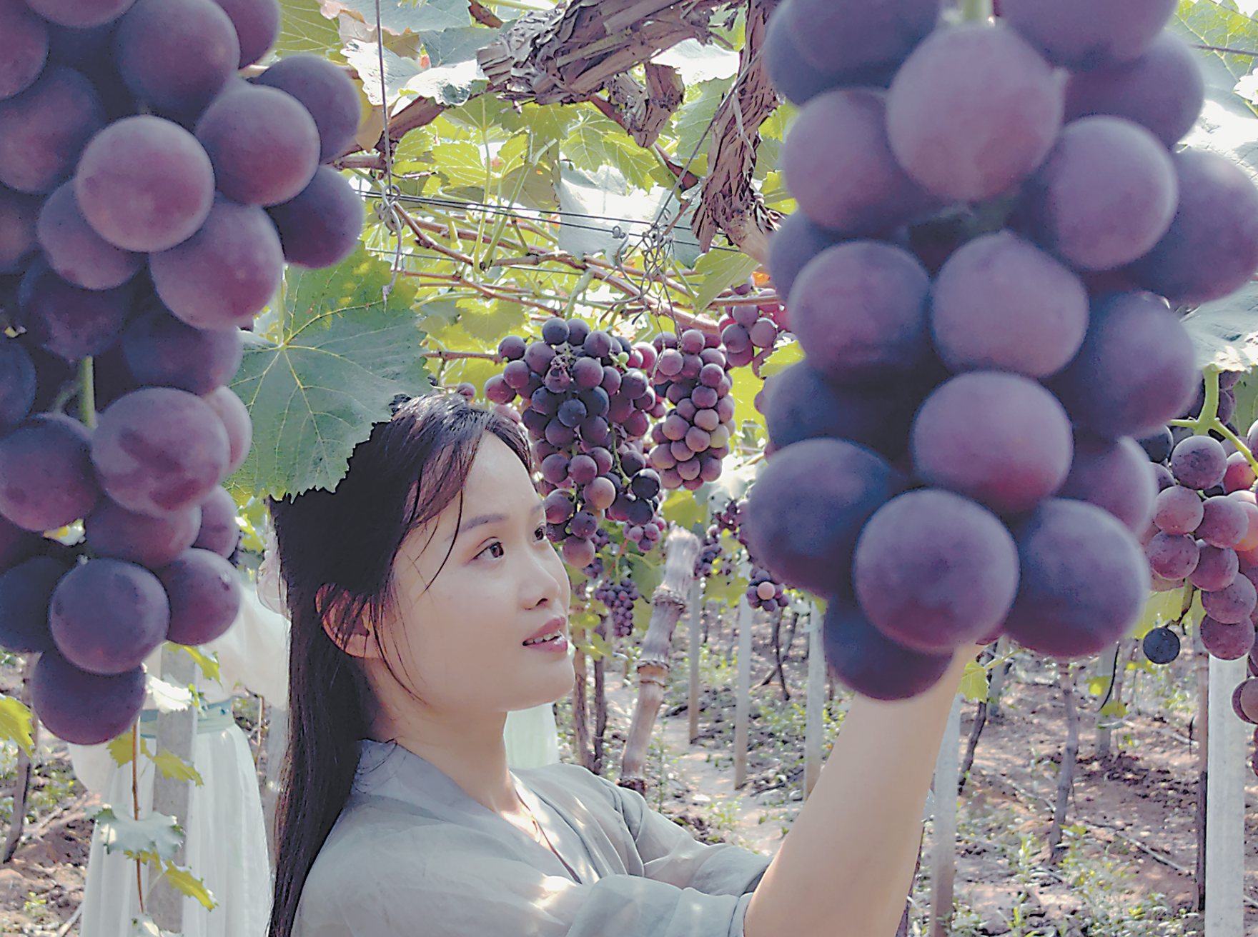 葡萄园深处,游客的笑脸与果农的期盼交织。郑大爷一边麻利地给刚摘下的“阳光玫瑰”打包装箱,一边笑着对记者说:“甜得像蜜,朋友圈一发,老顾客就急着下单!”晶莹的汗珠映着阳光,也照出小葡萄串起大产业的梦想。