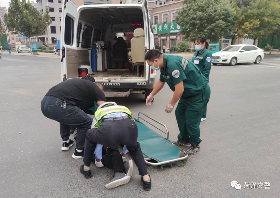 10月3日,东明县交警大队城区中队早高峰在城区主要路口执勤中,遇一起突发性交通事故,立刻拨打了120急救电话,救护车到达现场后发现伤者是一名老人,腰部受伤无法动弹,正在路口执勤的城区中队民警高建华、霍耀华闻讯赶来,在曙光、向阳路口协助医护人员移动伤员。并小心翼翼将老人抬上救护车,紧急送往医院。