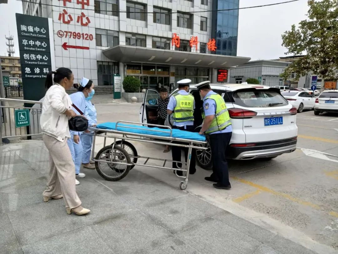 由于国庆期间高速路段车辆较多,民警配合警灯与喊话器指挥,使社会车辆纷纷配合让行,用最快的速度抵达济宁医学院附属医院,并在医护人员的指导下将病人抬上担架推往救治,为伤病患者赢得了宝贵的救助时间,孩子家属感激不尽。