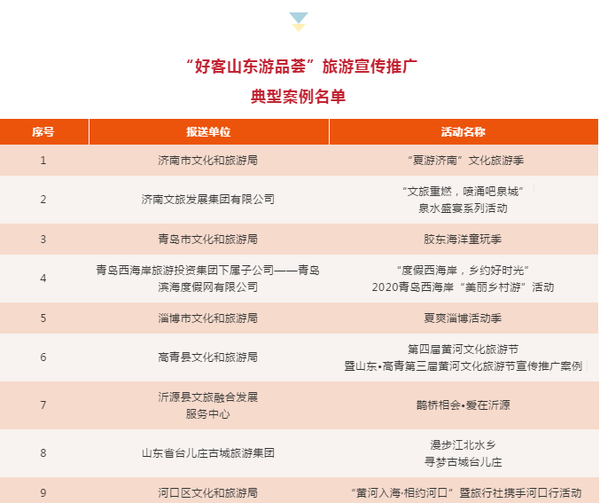10月16日,山东省文化和旅游厅发布《关于公布“好客山东游品荟”旅游宣传推广典型案例名单》的通知,确定全省32个案例为“好客山东游品荟”旅游宣传推广典型案例。菏泽市文化和旅游局报送的“游购菏泽,惠享精彩”牡丹之都文旅优品荟线上推广活动名列其中,今后将纳入全省旅游宣传推广营销培训案例教学进行宣传推广。